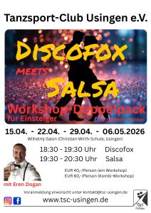 • Ein Workshop (Discofox oder Salsa): 40 € pro Person