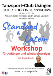 Wir laden alle Tanzinteressierten zu einem Workshop für Standard- und Lateintänze ein. Ob eleganter Walzer, ausdrucksstarker Tango oder