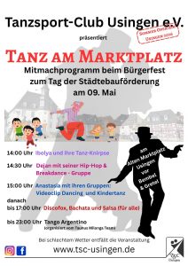 Der Tanzsport-Club Usingen e.V. beteiligt sich am 9. Mai mit einem vielfältigen Mitmach- und Showprogramm am Bürgerfest zum Tag der Städtebauförderung auf dem Alten Marktplatz.